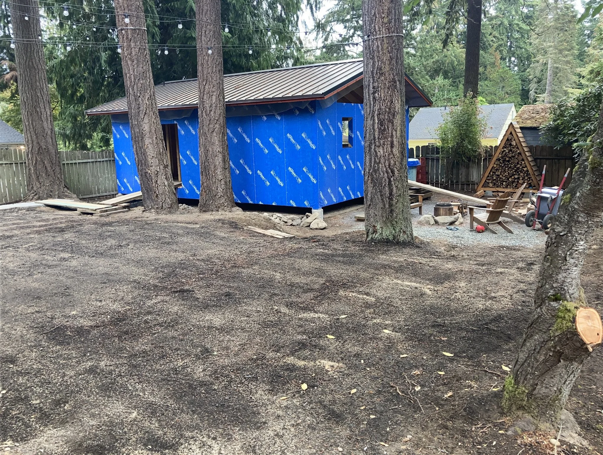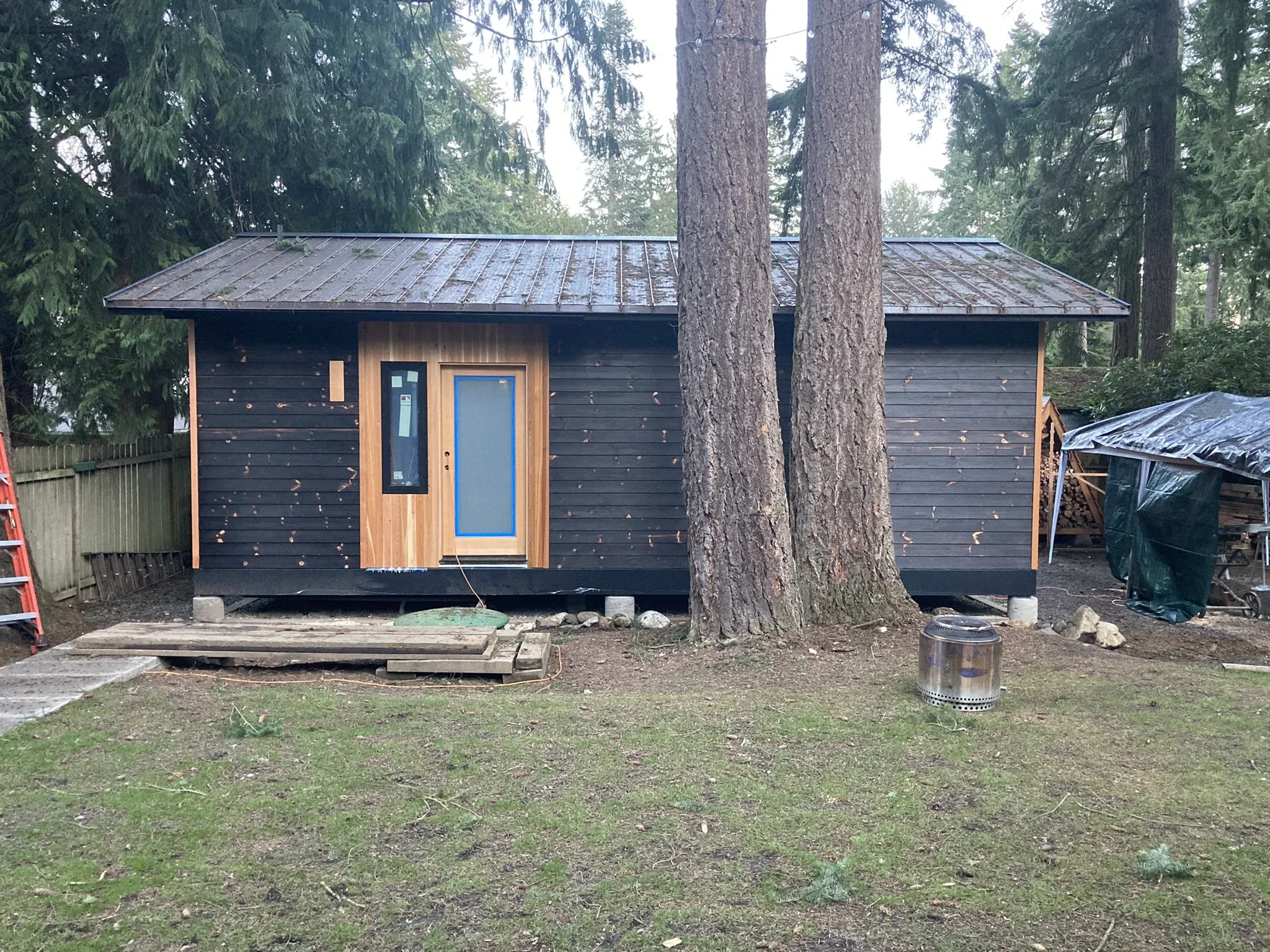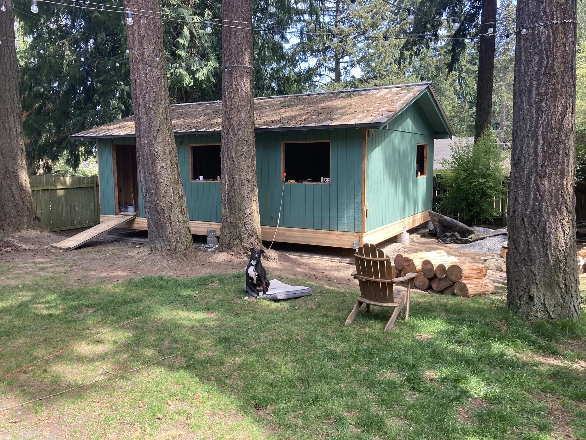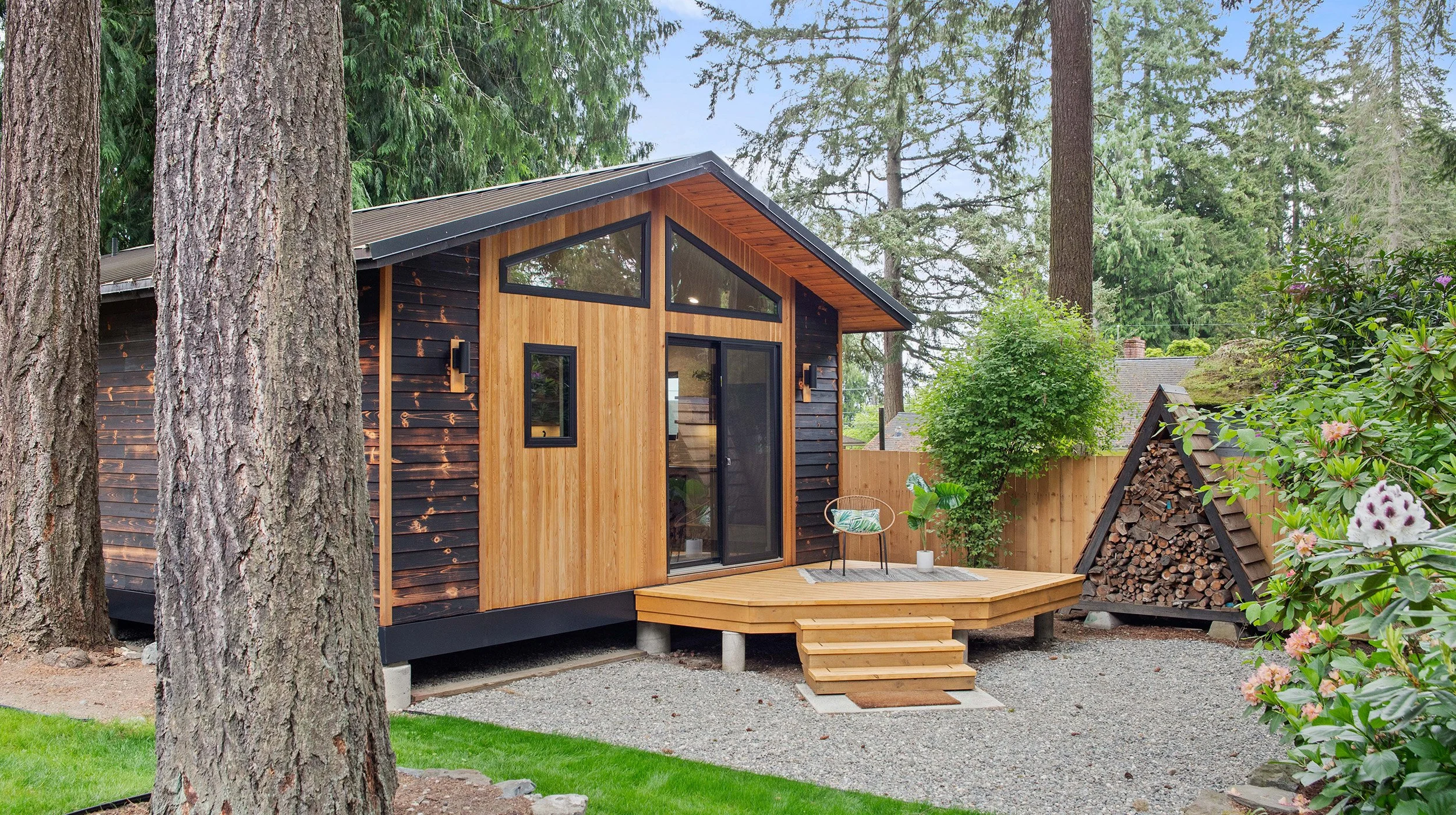 transforms an existing outbuilding into a backyard oasis