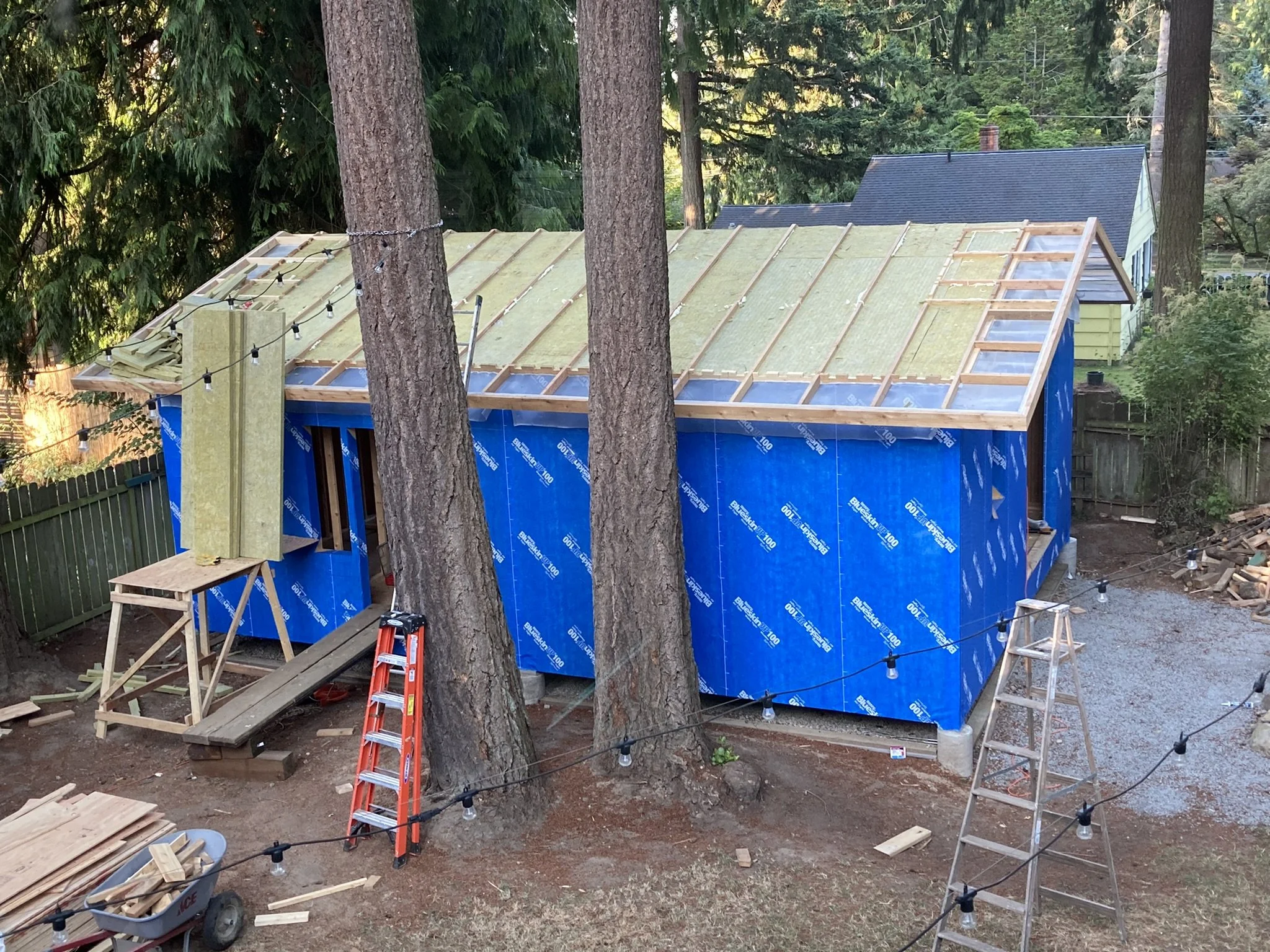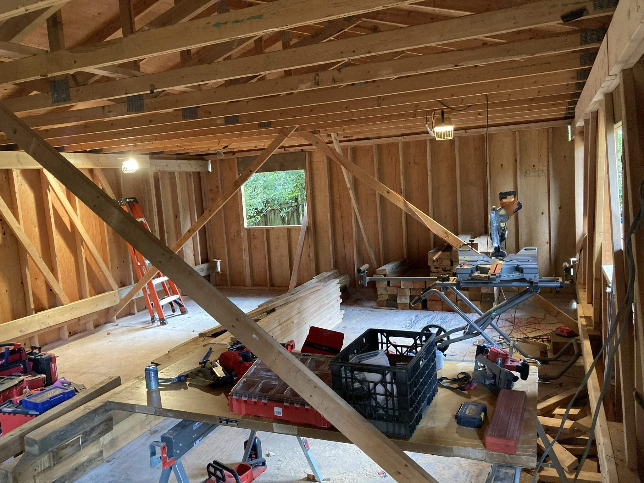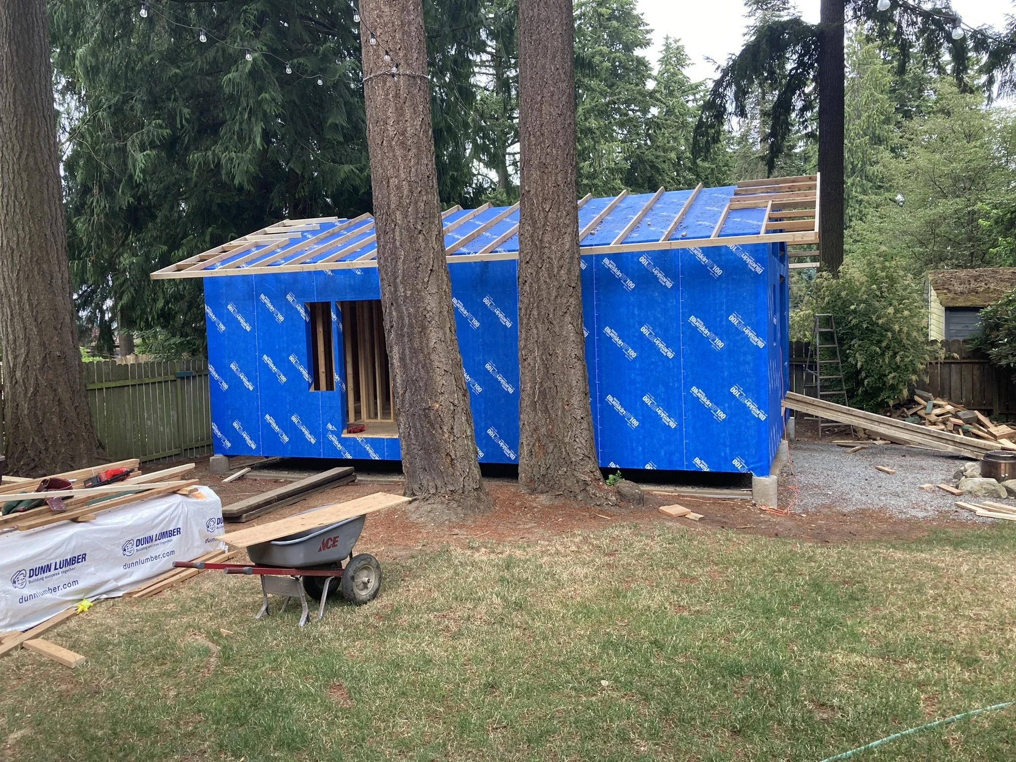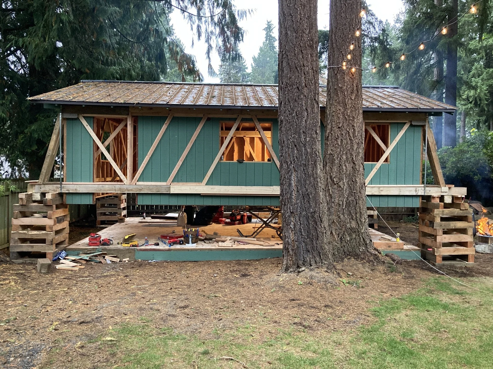 transforms an existing outbuilding into a backyard oasis