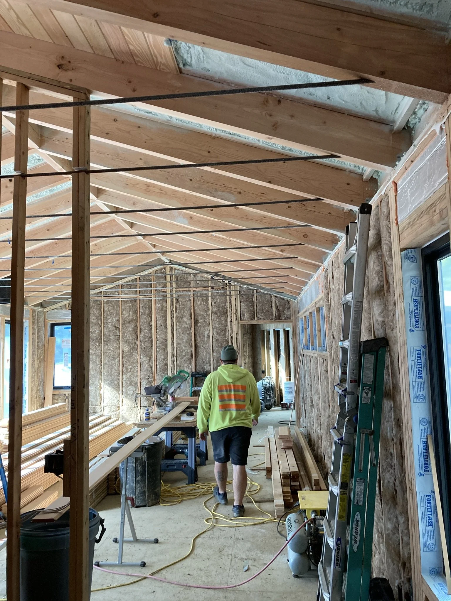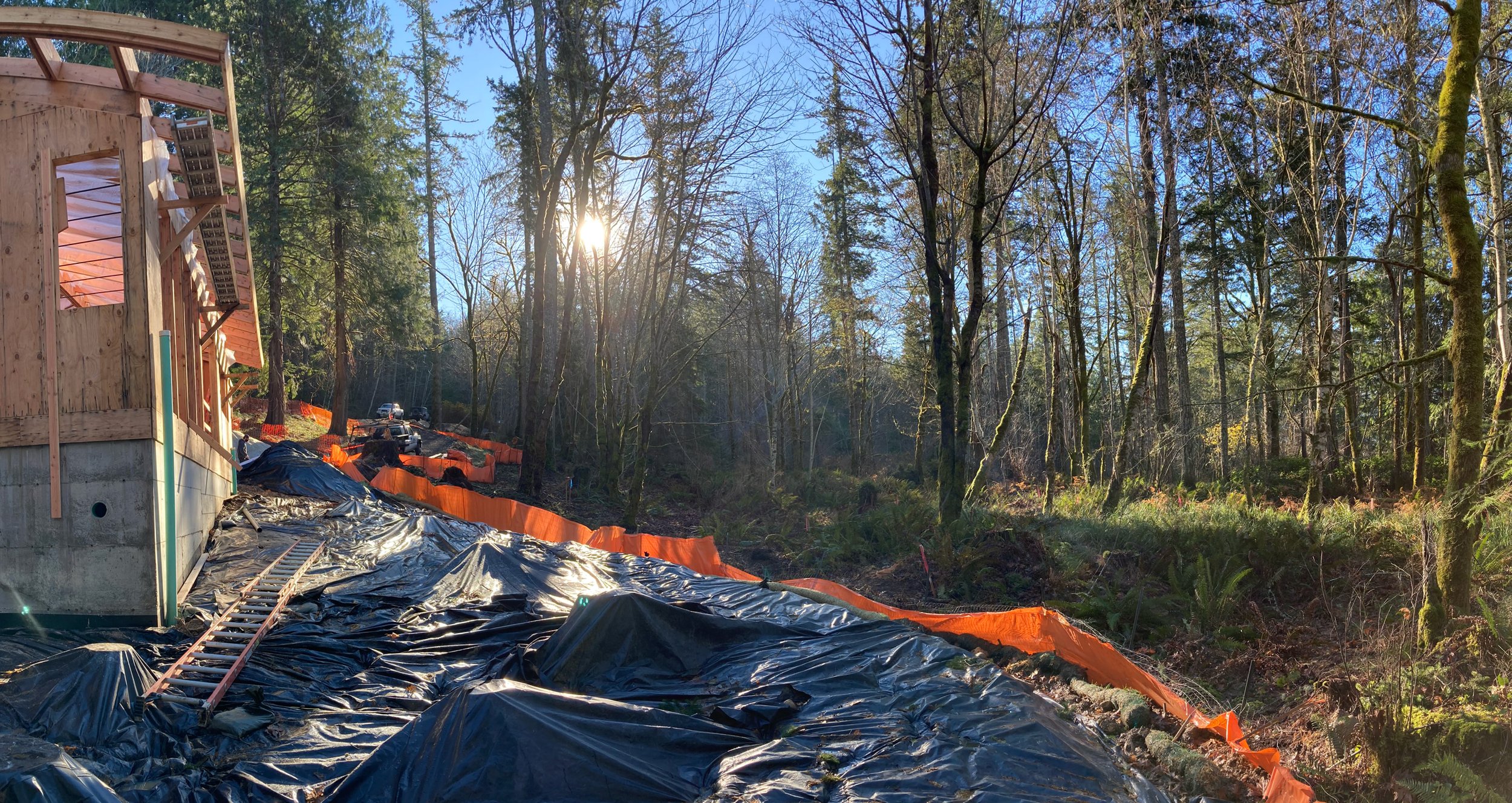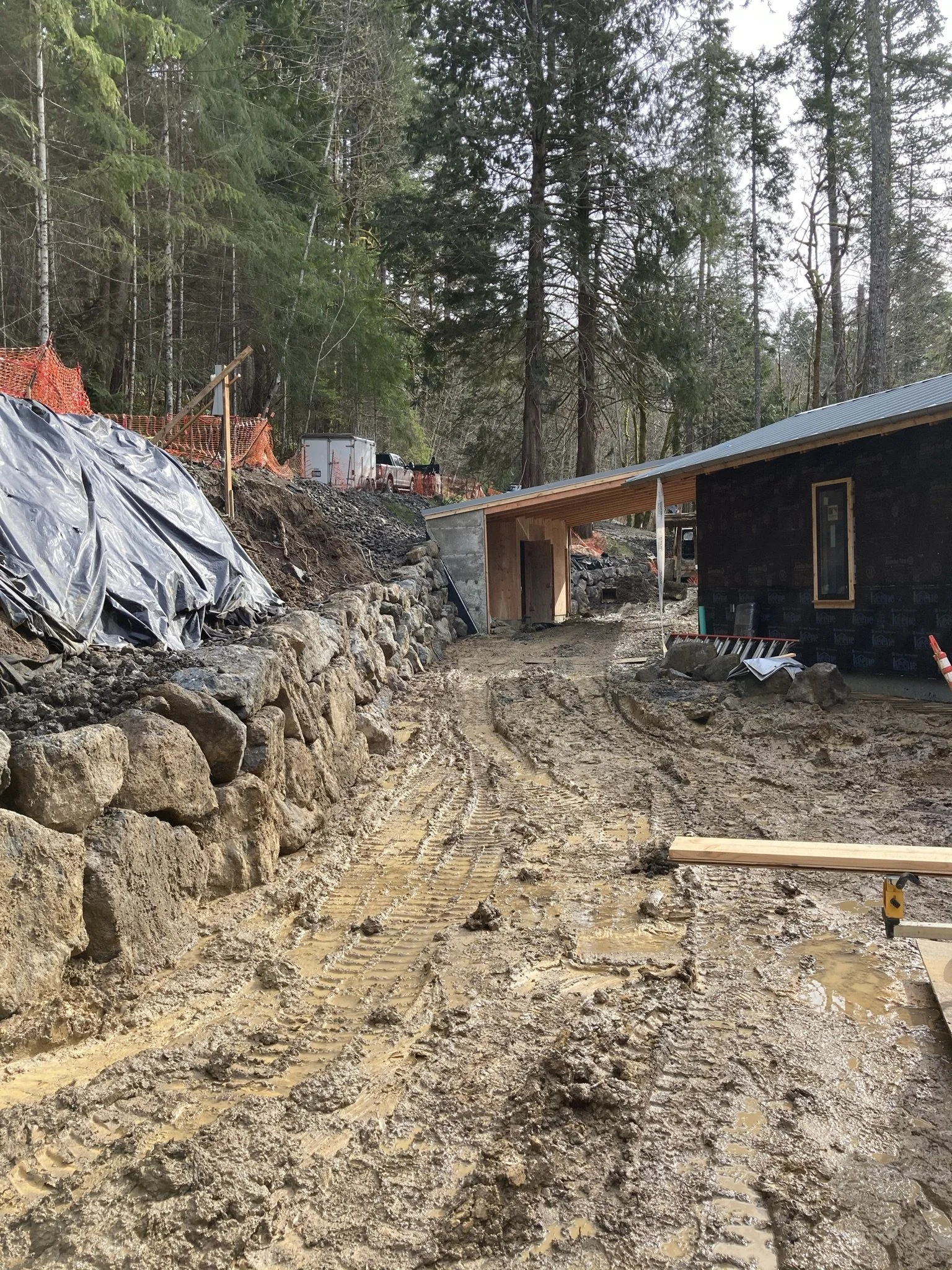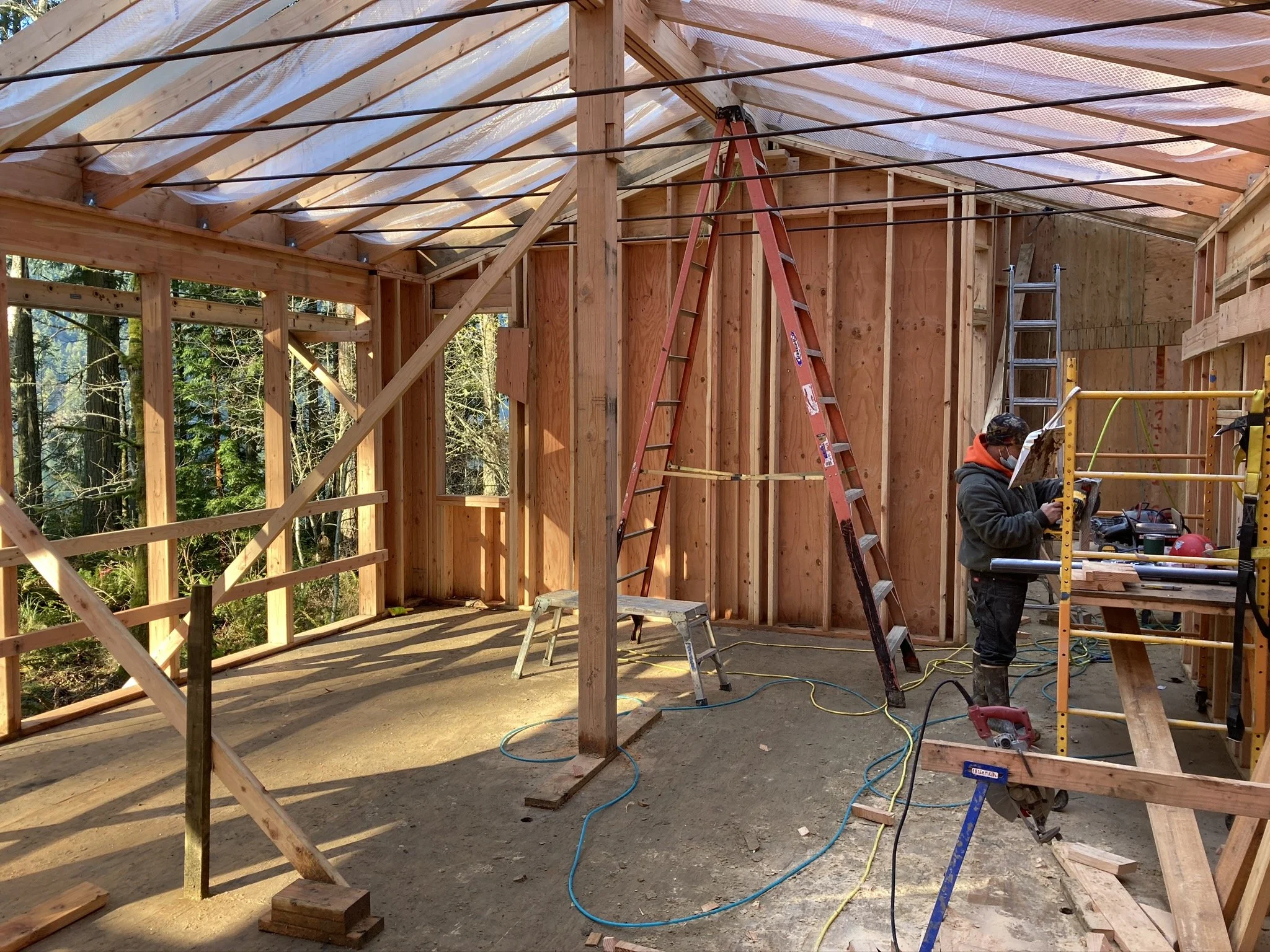 Tucked into the forested hillside above Dabob Bay, this family cabin rests quietly among filtered light and cedar shade. The home unfolds as a single story stretched along the contours of the land, shaped as much by constraint as by opportunity. Set back from the site’s natural wetlands its form follows contour and canopy, honoring what is already there. From the entry, the forest gives way to light — a framed view across the forest floor to the bay beyond can be enjoyed from a large deck that hovers above the slope; a place to linger. Outside sentiments of traditional northwest cabins are echoed by cedar shingle siding, while inside exposed rafters trace the rhythm of the roof. Materials of cedar, fir, and oak soften the structure giving warmth to the clean lines within. Here, design listens to the site — not imposing upon it, but growing from it — a home where simplicity meets reverence for the land.